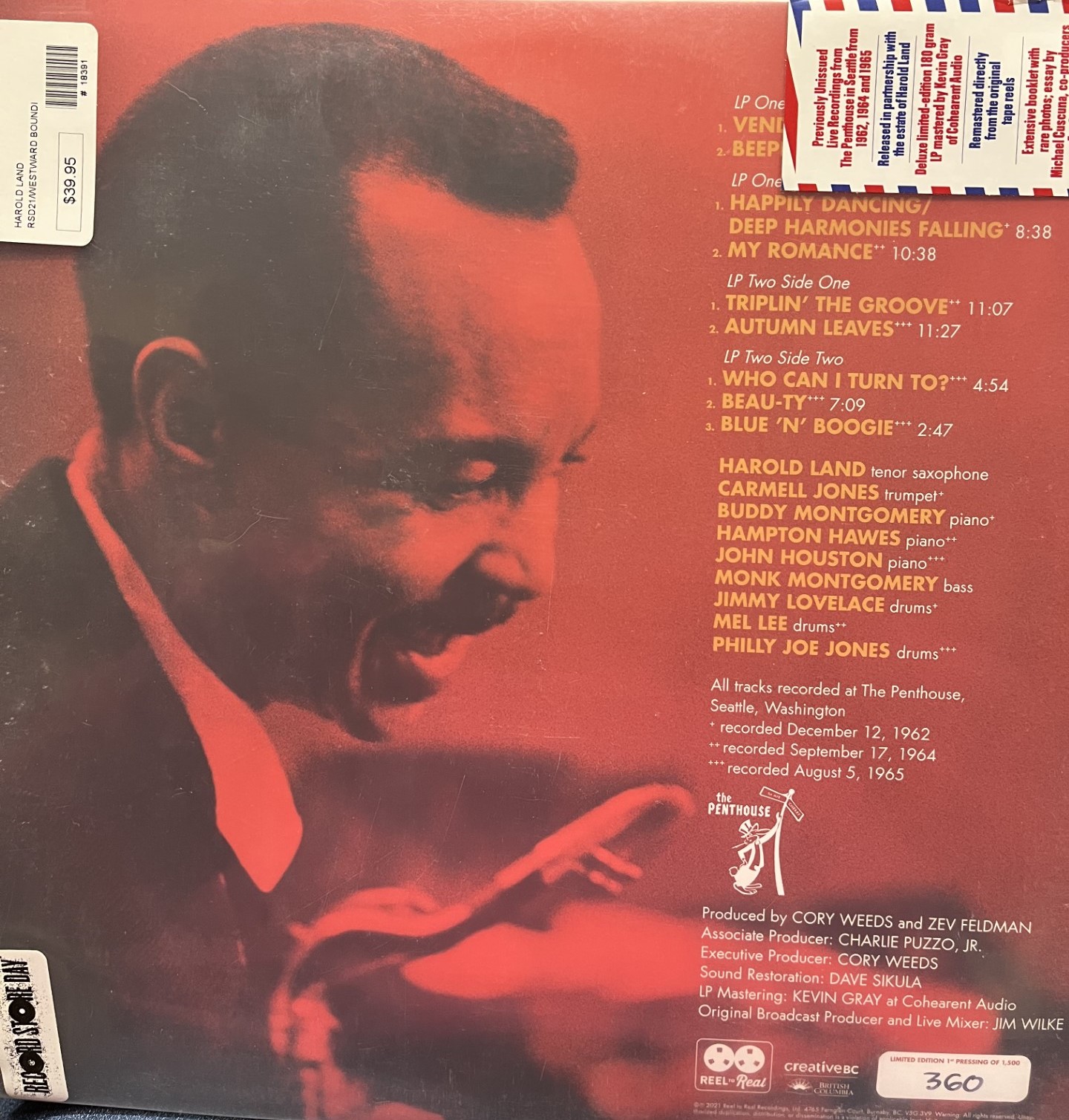 Harold Land – “Westward Bound!” 2LP Limited Edition, Numbered (360), Mono quantity