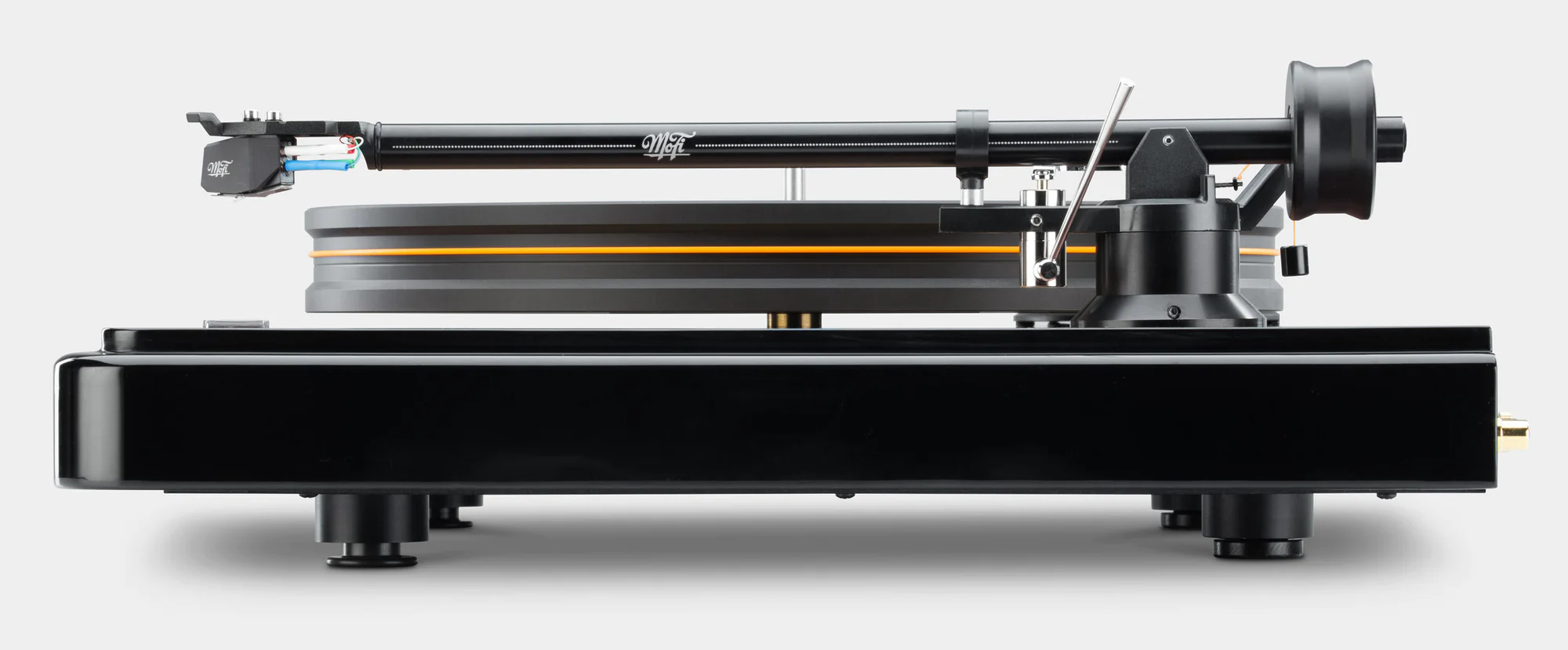 Any vibration of the stylus that is not created by the grooves in the record is a distortion that will mask musical detail. Developed in conjunction with the engineering team at Harmonic Resolution Systems, the world leader in vibration isolation for audio equipment, the included MoFi anti-vibration feet isolate your turntable from bad vibrations.
