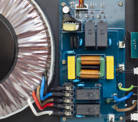 - The 900W(Peak power) high-power ultra-thin toroidal transformer power supply has been enhanced to deliver cleaner and more stable power with a lower noise floor. The entire power path fully adopts 40A ultra-high current and low resistance terminals. Improve current dynamic capability. Total of 48400uF (one channel ) power supply filter capacitors